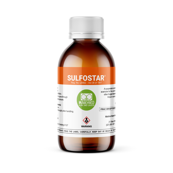 Sulfostar is a premium sulfur-based fungicide and acaricide formulated to protect your plants from common fungal diseases and pest infestations. It effectively controls powdery mildew, rust, thrips, and red spider mites, keeping your plants healthy and thriving.